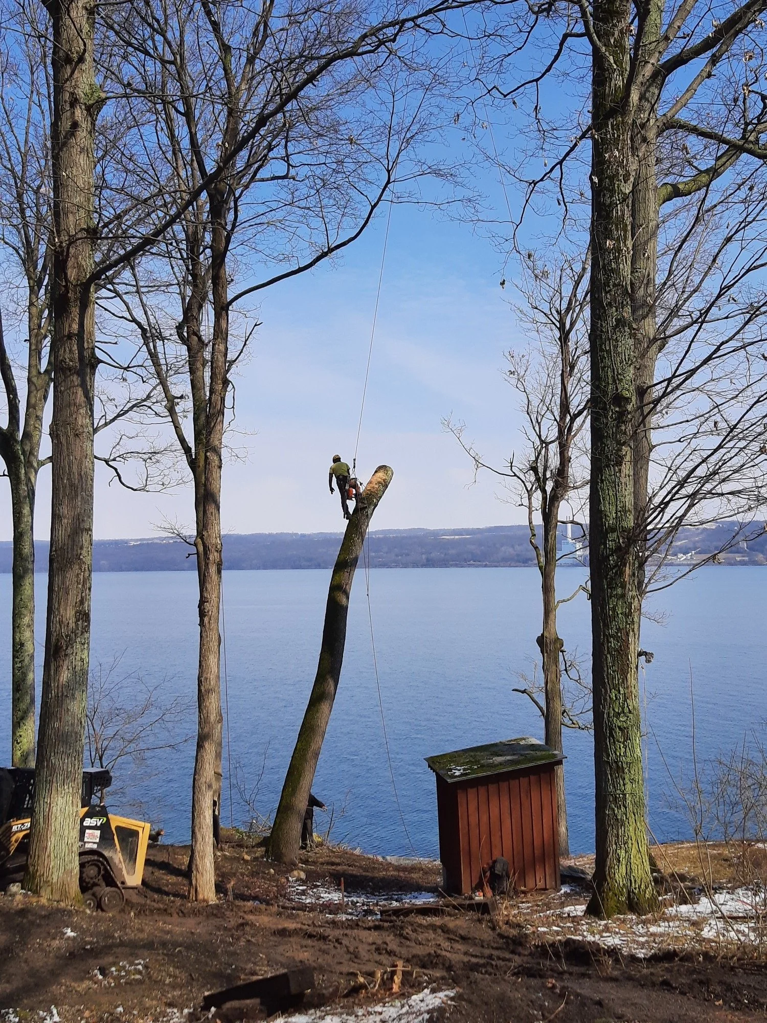 Let our team of experts with more than 10 years of experience bring their skills and knowledge to help take care for your trees. We excel at technically difficult trees but our competency extends to all aspects of tree care. For especially difficult situations our crane and barge subcontractors facilitate. We also have experience with road closures and working with NYSEG crews.
